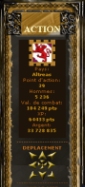 L'écran de SITUATION vous indique votre position dans le monde. Vous et votre troupe êtes représentés par votre drapeau. Un nouveau menu à droite (ci-contre) vous permet de vous déplacer dans le monde à l'aide des flèches de direction. Chaque déplacement coûte 1 point d'action. Certaine Option comme le pavé de direction peuvent disparaître si vous n'avez plus de point d'action. En haut du menu se trouve votre drapeau. En dessous est indiqué le totale de vos points d'action disponibles, le nombre total d'homme constituant votre troupe, et enfin, sa valeur de combat. Sous le pavé de direction se trouve différente Option CONTROLER: coûte un point d'action et permet de prendre le contrôle de la province. Attention si la province est déjà contrôlée la population se défendra, ne la sous-estimé pas... PROSPECTION: La prospection ne coûte pas de point d'action, mais il faut en avoir pour prospecter. Vous obtiendrez par cette dernière des informations importante sur la province. PILLAGE: Permet de piller la province et de voler ses ressources. Attention si la province comprends une population importante elle se défendra et tentera de vous empêcher de la détrousser ainsi. MESSE: Si vous êtes un prêtre vous pouvez organiser une messe dans la province et ainsi améliorer son moral. TRAFIC: Si vous êtes un mercenaire vous pouvez organiser différents trafics dans la province et ainsi gagner quelques couronnes. |
