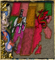 | An de grâce 370, Après une victoire éclaire des armées éryliennes au Sud du contient, le monde doit à nouveau faire face à la monté d’Érylyn dans l’univers Kaldéen. Et à nouveau, l’Alliance tente désespérément de freiner l’avancée de l’ennemi de toujours. Tout d’abord, faisons ensemble la carte géopolitique de Kald vers l’an 370 : - La Guilde des Dragons vient de fêter ses deux siècles d’existence, en effet, c’est la plus vielle communauté du monde. Elle partage l’Église avec ses alliés Levants et contrôle la quasi totalité du Nord, à savoir : Varalind, Fall Kirk, Goréhandal, Sartar, les nouvelles terres (baptisé Terre des Légendes par son explorateur Dekork, le Navigateur, Duc des Dragons) c’est-à-dire Olavenslok et Bradorshvan mais aussi quelques fiefs en Gallica (environ 1/4 du pays). |